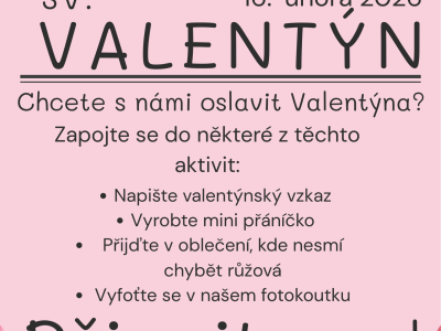 Máte rádi růžovou, focení nebo chcete někomu udělat radost milým vzkazem? Tak to si nenechte ujít naši valentýnskou akci, která proběhne v pondělí 16. února!