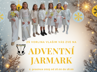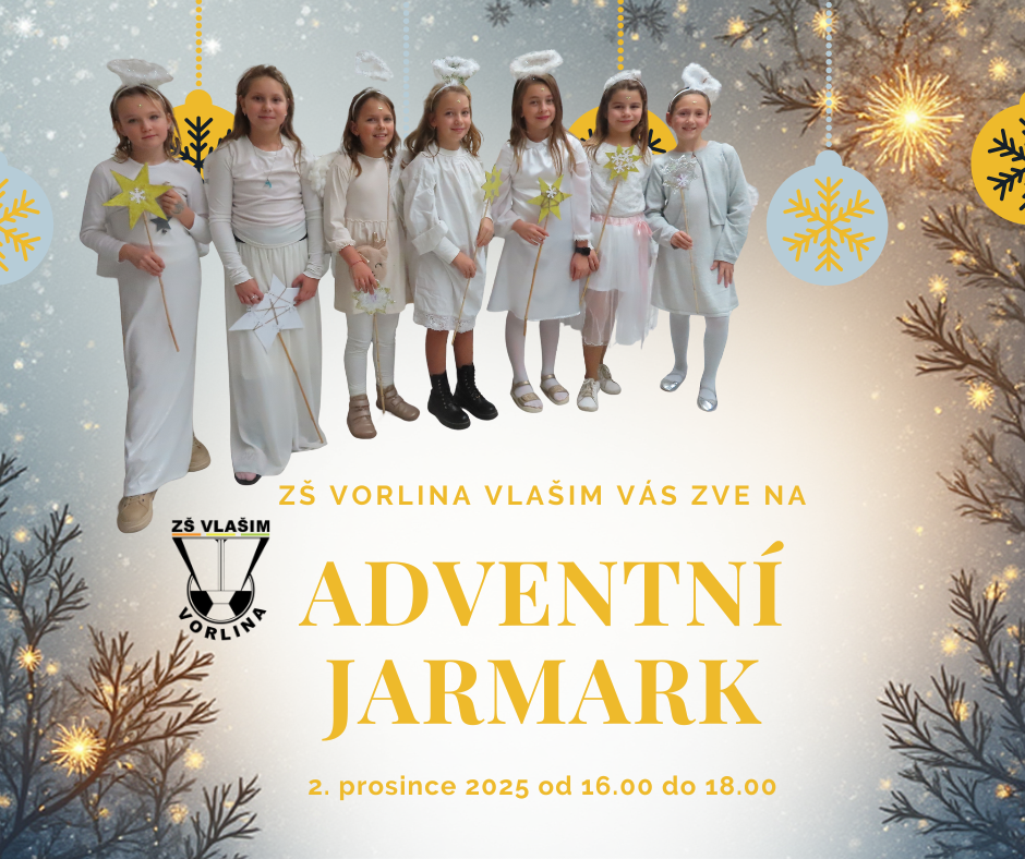 ZŠ Vorlina Vlašim vás srdečně zve na tradiční Adventní jarmark, který se uskuteční v úterý 2. prosince 2025 od 16.00 do 18.00 hodin v prostorách školy.