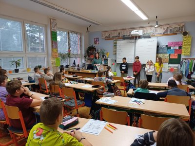 Na závěr jsme si zopakovali nejdůležitější dopravní značky. Někteří žáci za své znalosti získali reflexní pomůcky.