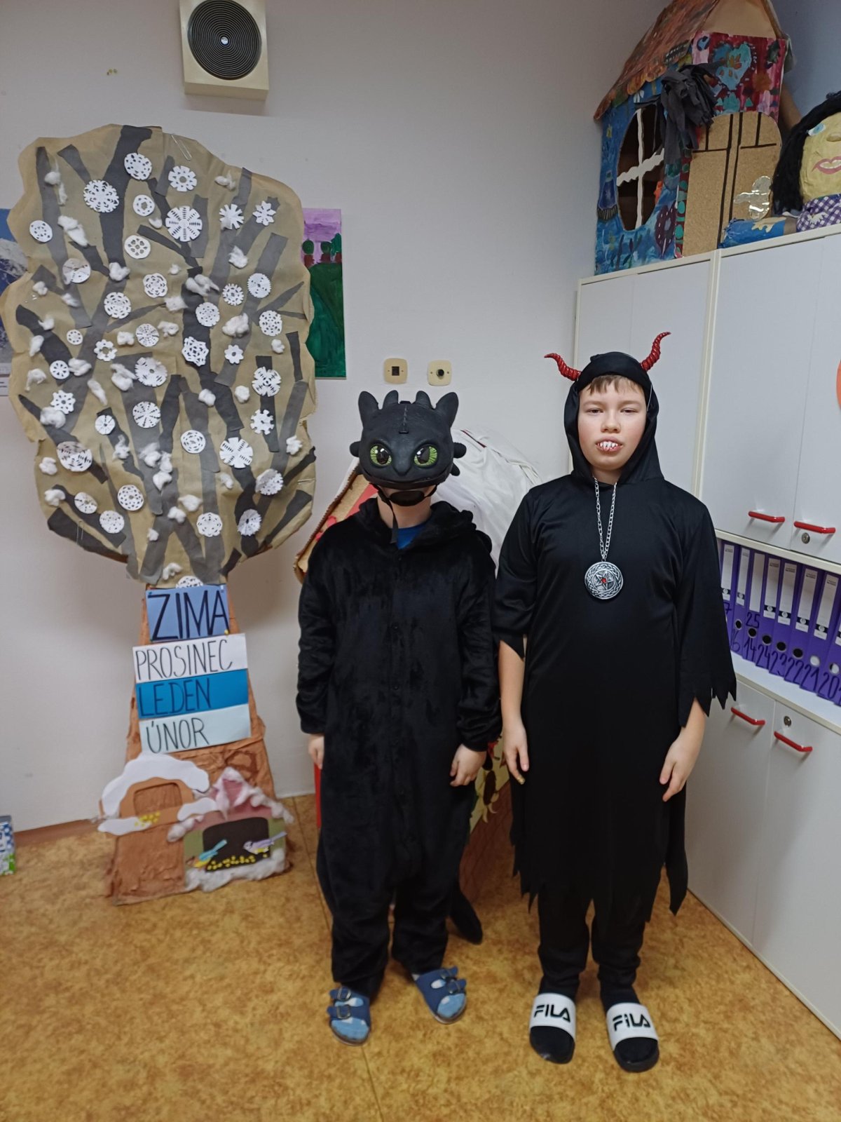 Ve středu 28. ledna jsme měli dlouho očekávaný karneval. Koná se pravidelně ve školní tělocvičně. Připravuje ho pro nás Domeček. Ráno jsme se sešli ve třídě. Někdo již přišel ustrojený, jiní se do masky převlékli až ve třídě. Masky byly různé, byla na nich vidět fantazie nejen dětí, ale i našich maminek.