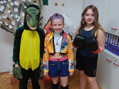 Do tělocvičny jsme odcházeli na devátou hodinu. Paní ředitelka Domečku nás přivítala. Vyfotili jsme se a pak už začala zábava. Tančilo se, zpívalo, přednášelo. Čas rychle uplynul a byl konec.
