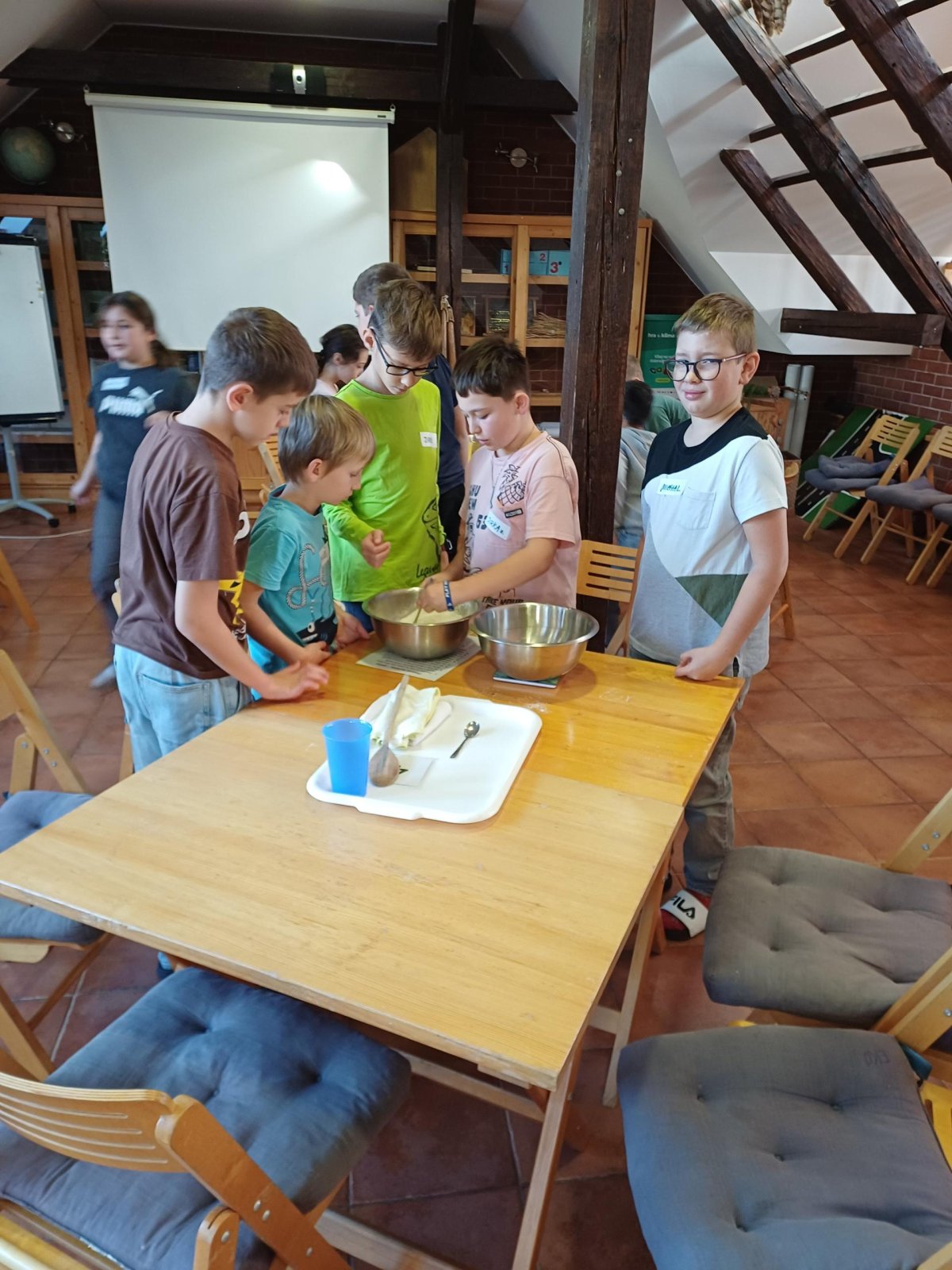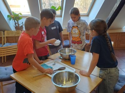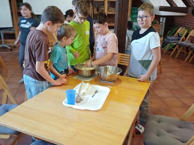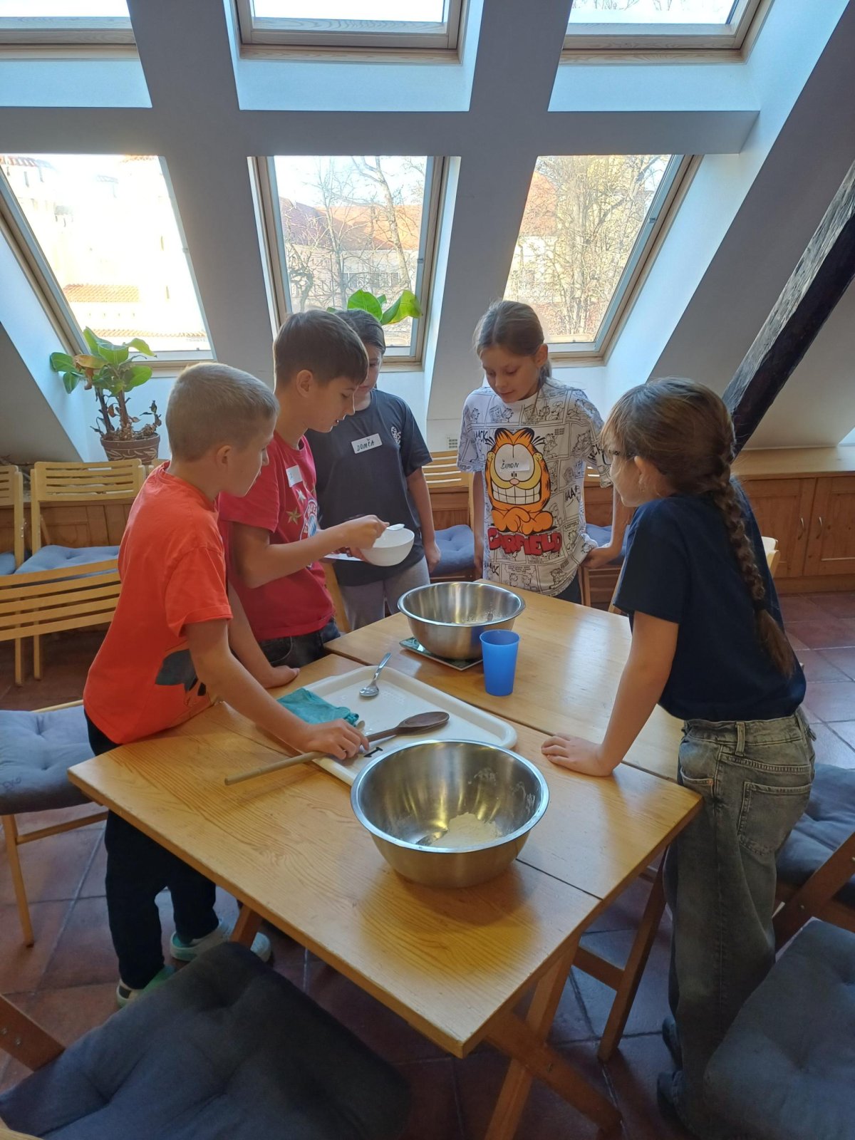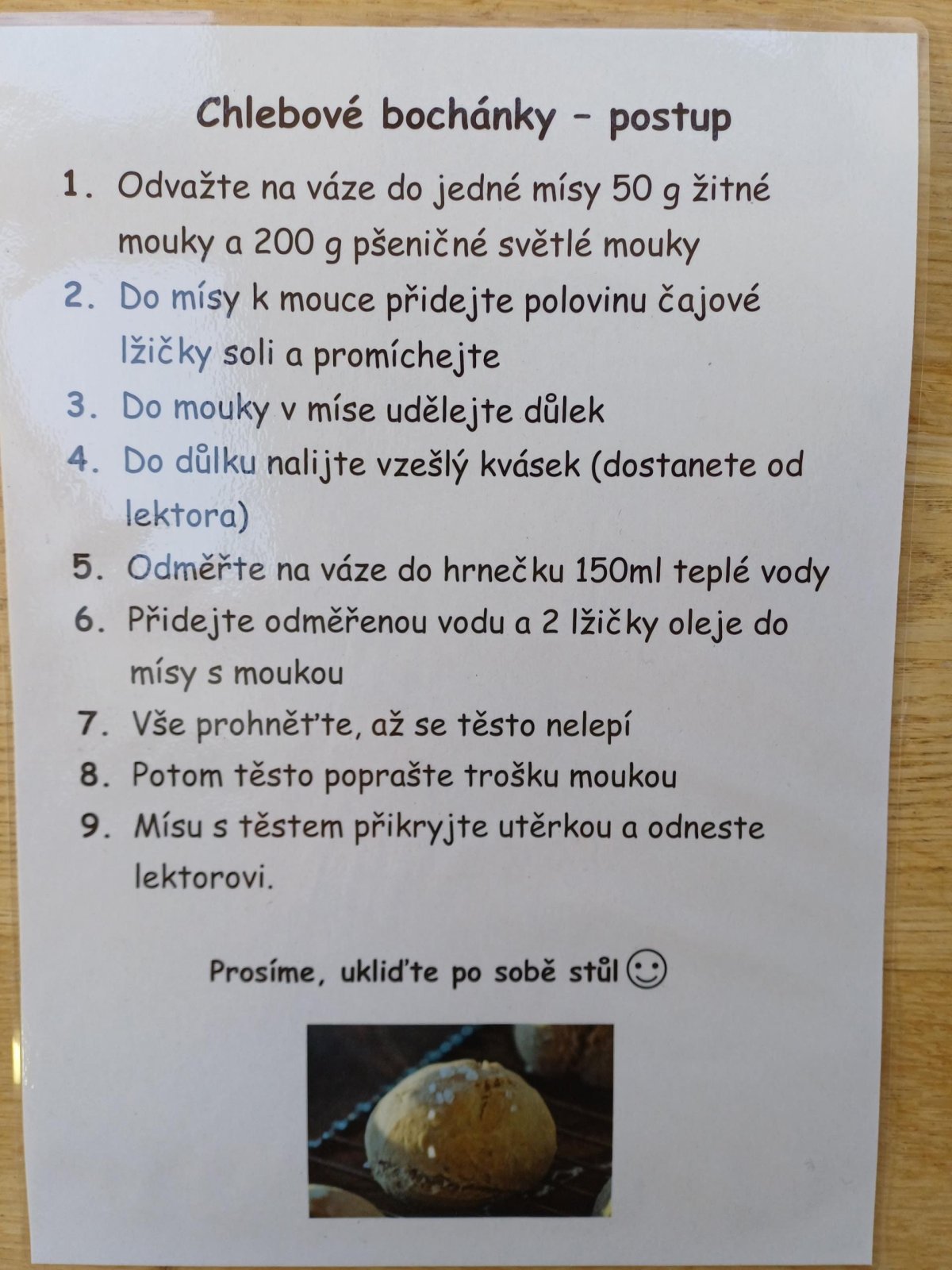 V pátek 14. 11. jsme se vydali do Ekocentra na program Od zrnka k bochníku. Připomněli jsme si, z jakých surovin se peče chléb. Vyprávěli jsme si o zpracovávání obilí v minulosti a dnes. Největším zážitkem bylo naše vlastní pečení. Zjistili jsme, že hnětení těsta není vůbec legrace. Výsledek ale stál za tu námahu. Byla to mňamka! K bochánku jsme dostali také recept, takže si pečení zkusíme i doma.