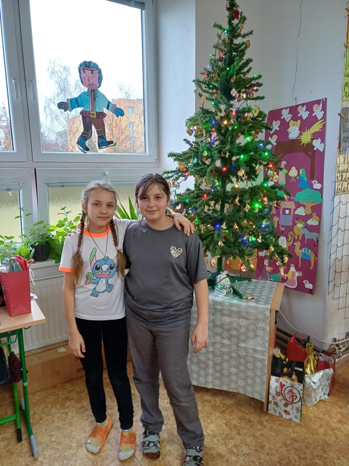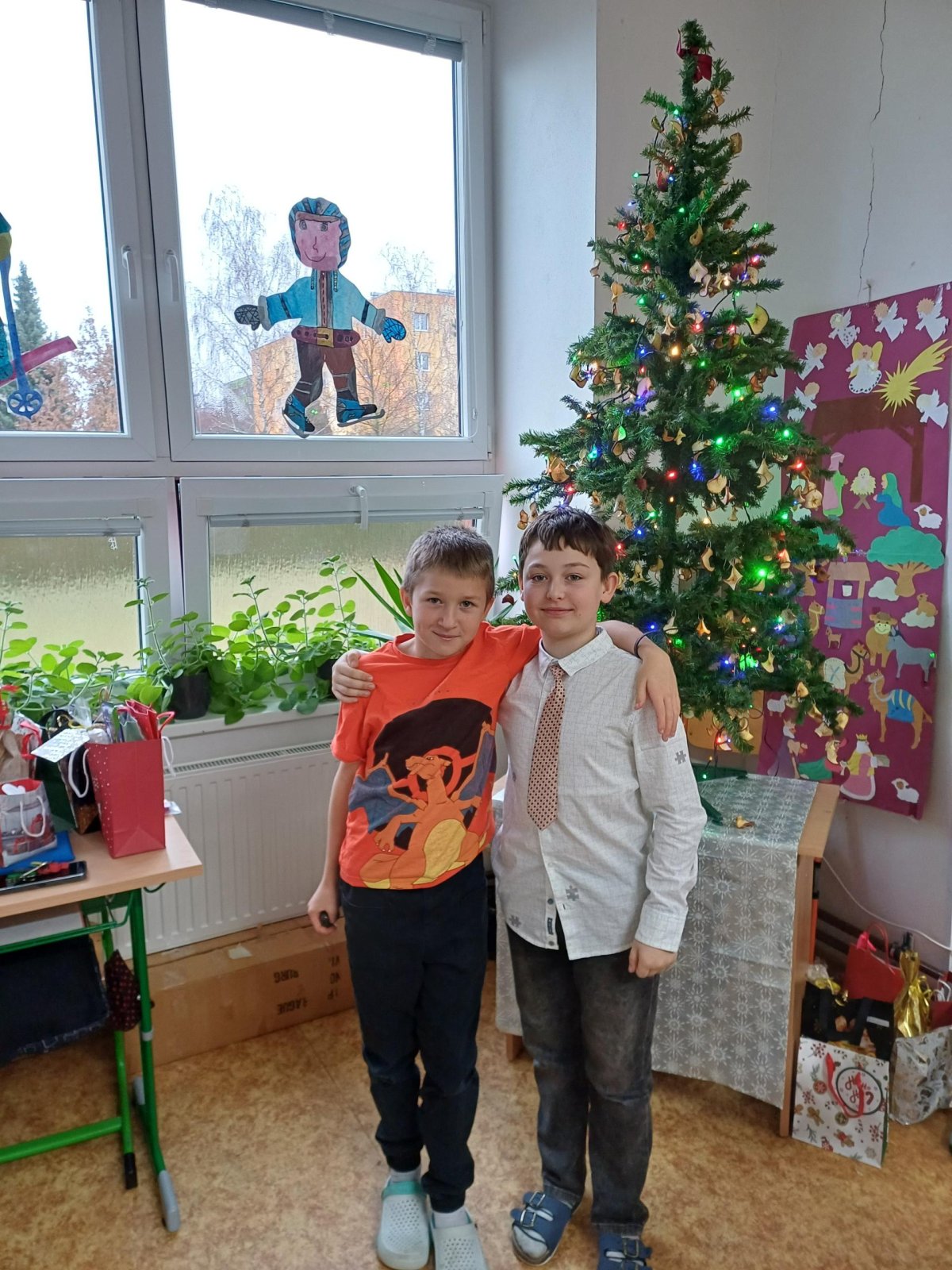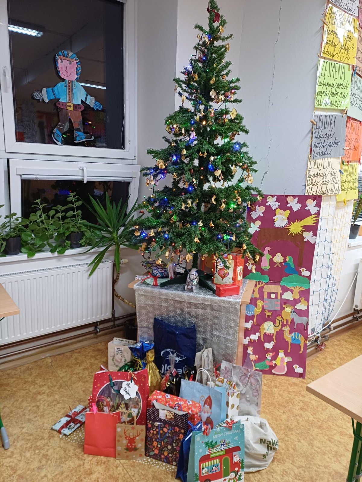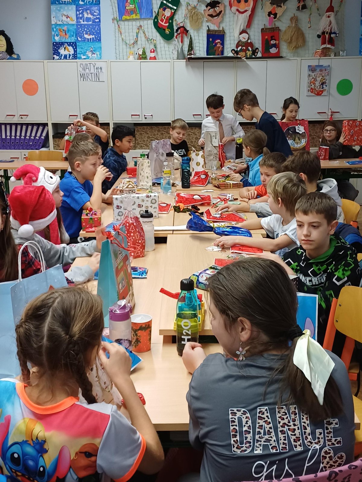 Pak jsme se pustili do rozdávání a rozbalování dárků. To bylo radosti! Letos bylo dárků více, protože pro děvčata a pro chlapce připravila speciální balíčky Oliverova maminka. Oliver v lednu bude chodit na jinou školu, tak jsme se s ním loučili. Všichni mu přejeme vše dobré. Doufáme, že se ještě někdy uvidíme.