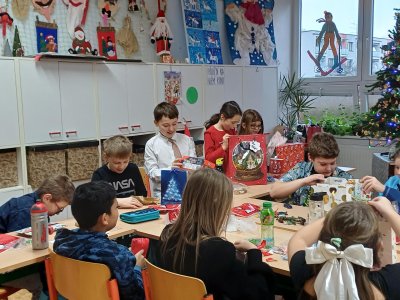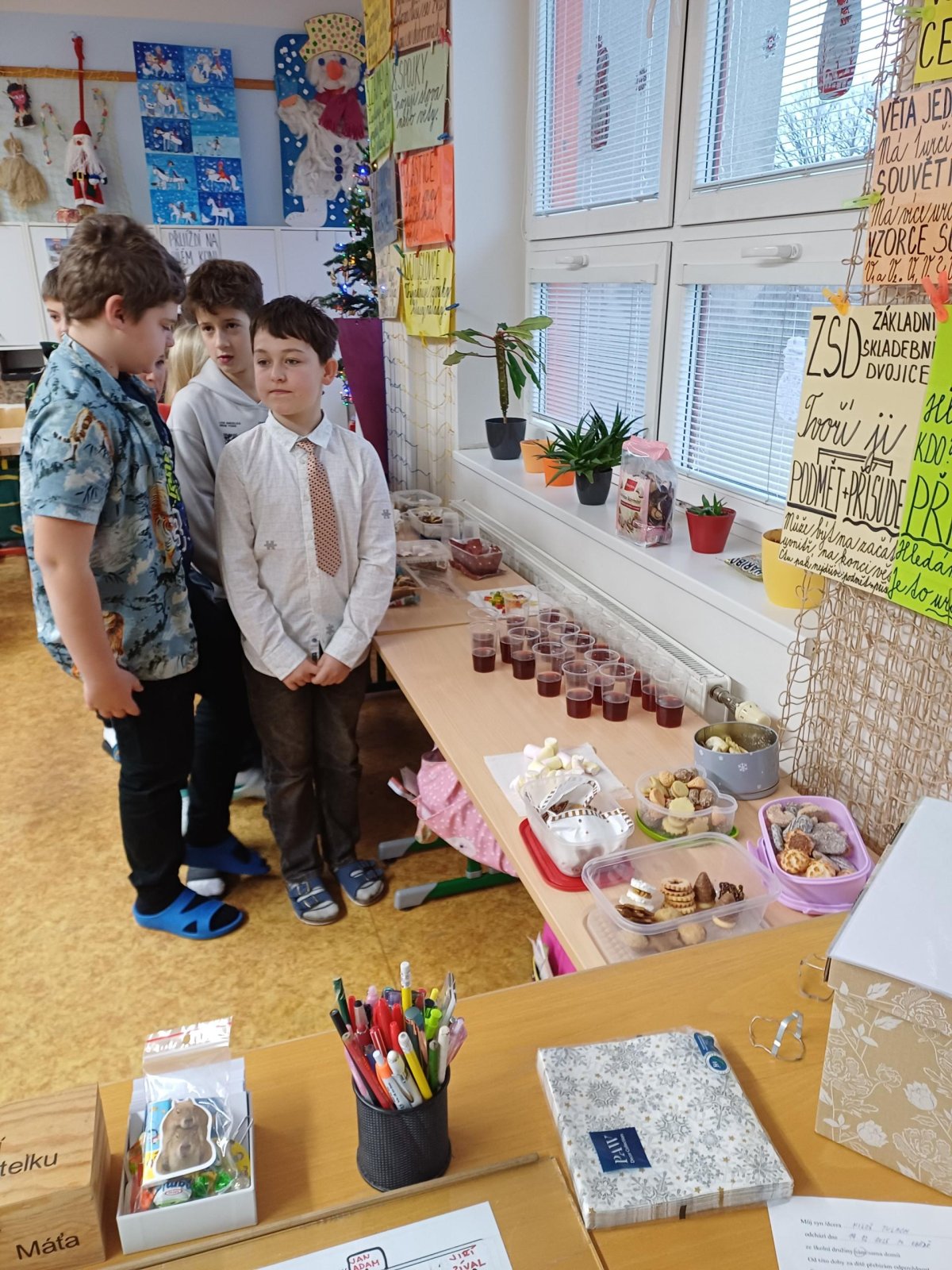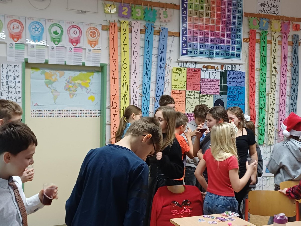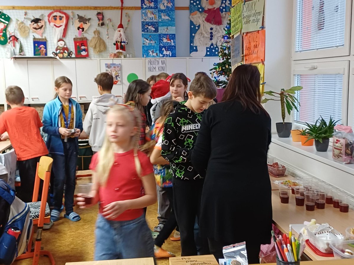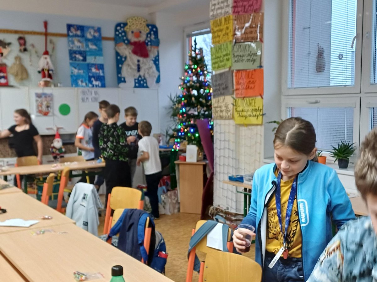 Na pátek 19. prosince jsme se všichni moc těšili. Byl to poslední den před vánočními prázdninami. Chystali jsme se na něj dlouho dopředu. Vymýšleli jsme si dárek pro svého kamaráda, pak jsme ho díky našim rodičům mohli koupit, zabalit a položit pod třídní stromeček. Den předem jsme si upravili umístění lavic, aby vznikla velká vánoční tabule. Rovněž jsme si zarezervovali svá místa :-))